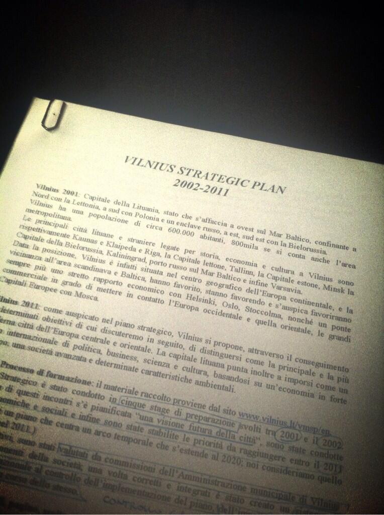 Tale era il nostro sodalizio che la coppia formata da me e Chicco era più scontata di un piagnisteo di Mazzarri e qualche giorno dopo ci mettemmo al lavoro. Le nostre sedute di studio, quando non erano presso il Circolo Arci di San Cesario (dove ancora faceva bella mostra di sé una cartina dell'Unione Sovietica), si svolgevano a casa di Chicco, previo piatto di tortelloni della nonna. Quindi, dopo aver guardato i Simpson e ascoltato qualche canzone, all'alba delle quattro e mezza della basora ci mettevamo al lavoro. Quel giorno non ne avevamo particolare voglia (diversamente dagli altri, beninteso) e, tra tutte le città europee con bilanci sociali di interessante analisi, noi ci convincemmo che la più adatta, non solo per noi, bensì per tutta l'assemblea davanti alla quale avremmo dovuto discutere, non potesse che essere Vilnius, arcinota megalopoli baltica, Capitale della Lituania. A dirla tutta la scegliemmo perché ce ne piacque il sito internet, alla cui apertura partiva una fighissima musichetta d'accompagnamento.